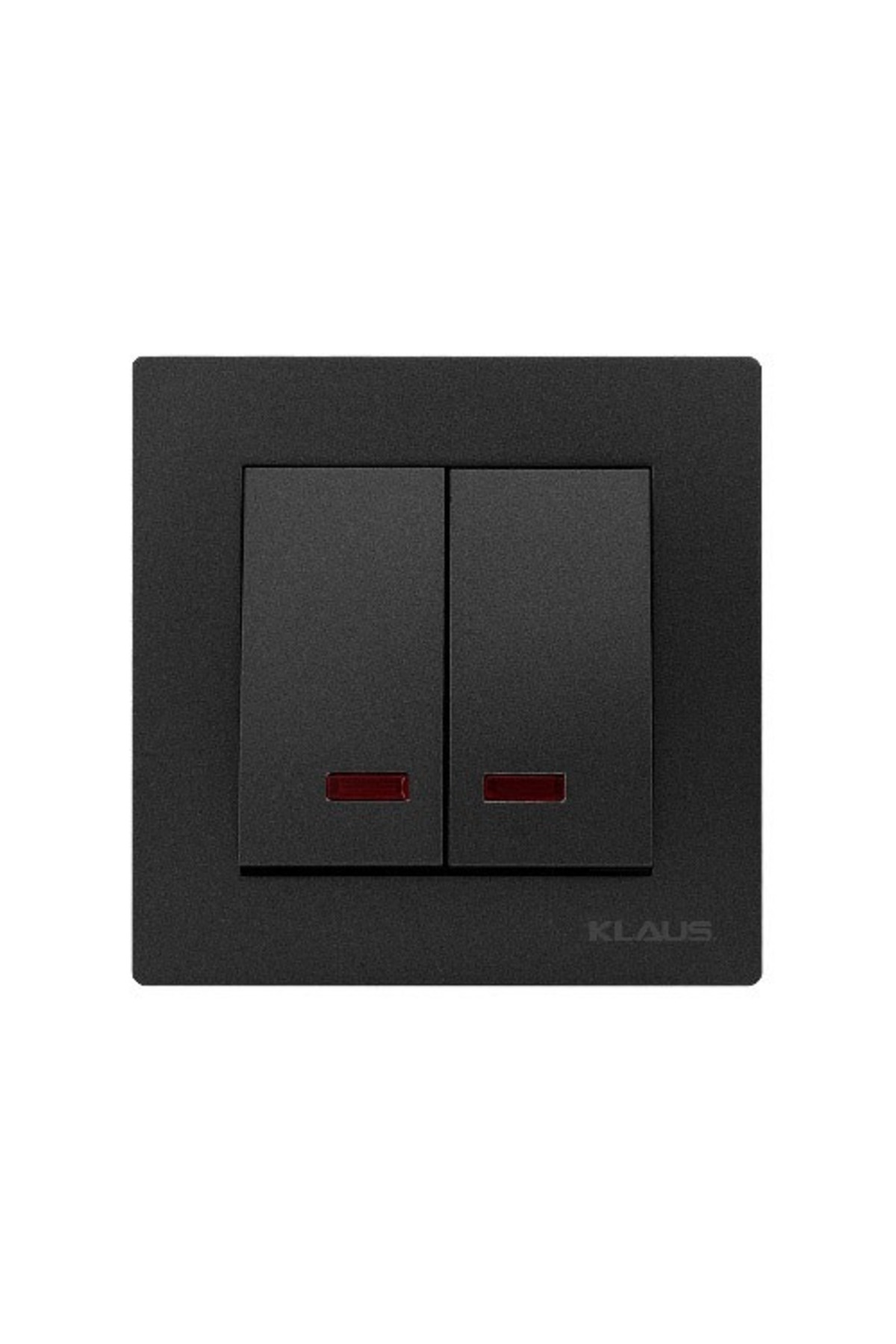 Set 10 întrerupătoare dublu cu led Klaus, finisaj negru, 10A/250V~ AC. Funcție: două taste cu LED indicator – ambele vizibile în întuneric. Conectare: 4 fire: fază comună + 2 faze ieșire + nul (pentru LED-uri). Montaj în doză de montaj standard Ø60 mm, montaj îngropat (flush) în perete. Cleme cu șurub pentru cablu rigid sau flexibil. Grad protecție IP20, temperatură funcționare 0°C la +35°C. LED indicator integrat – vizibil pe întuneric, consum <0,5W. Material: policarbonat / material plastic ignifug. Conform EN 60669-1.
