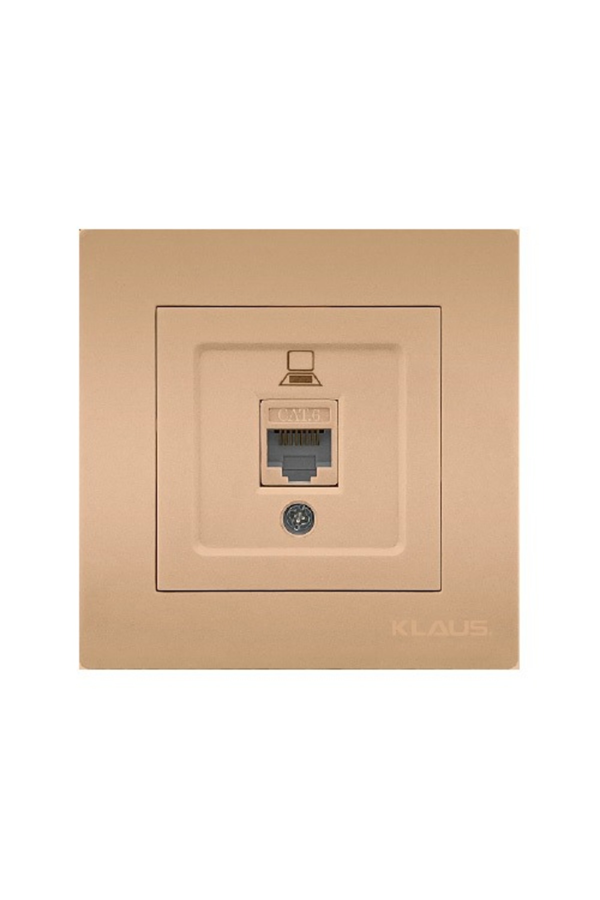 Set 10 priza date Klaus Cat6, conector RJ45, finisaj auriu mat. Permite conectarea computerului, smart TV, consolei de gaming sau access point-ului WiFi la reteaua Ethernet prin cablu UTP/FTP Cat6 – viteza pana la 1 Gbps la distante de pana la 55m (10 Gbps pana la 37m). Montaj in doza standard O60 mm, montaj ingropat (flush) in perete.