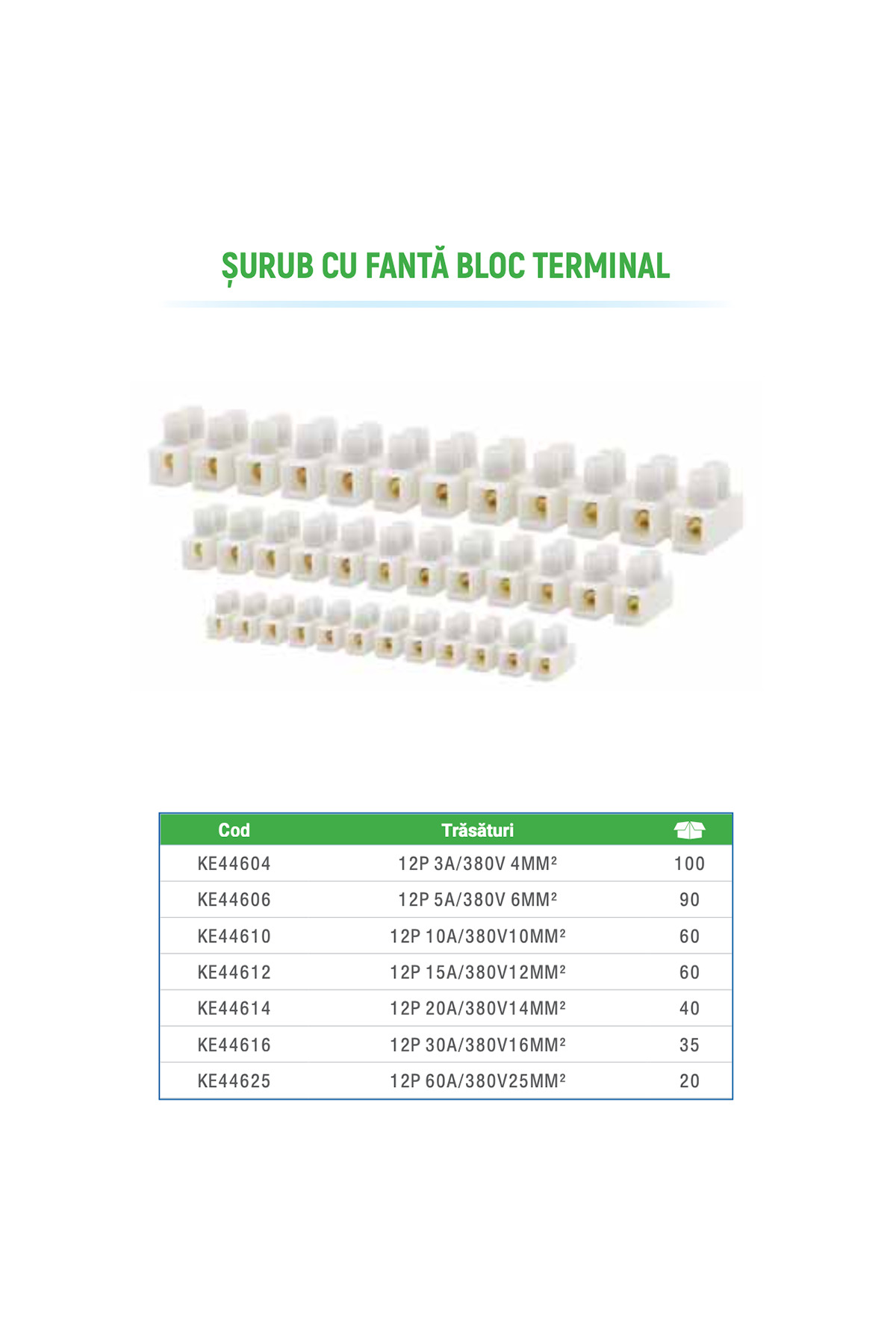 Blocul conector de 12 poli organizeaza 12 conexiuni paralele intr-un singur corp compact – mult mai ordonat si mai sigur decat 12 imbinari individuale. La 5A/380V, suporta circuite de iluminat si prize rezidentiale. Sectiune cablu pana la 6 mm2 – compatibil cu cablurile folosite in instalațiile industriale.