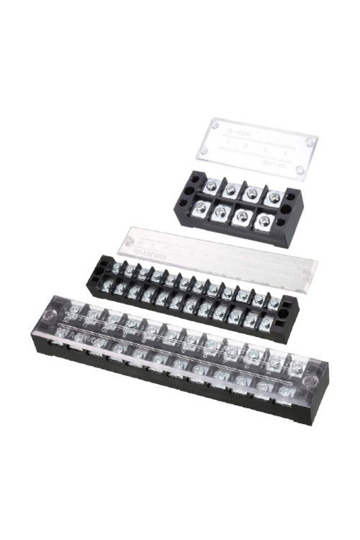Set 10 blocuri conector (terminal block) Klaus, 4 poli, 45A/600V, sectiune maxima cablu 4.0 mm2. Corp din plastic PA (poliamida) ignifug UL94V-2, contacte din alama nichelata, șuruburi din zinc. Capac transparent de protecție inclus. Conform IEC/EN 60947-7-1.