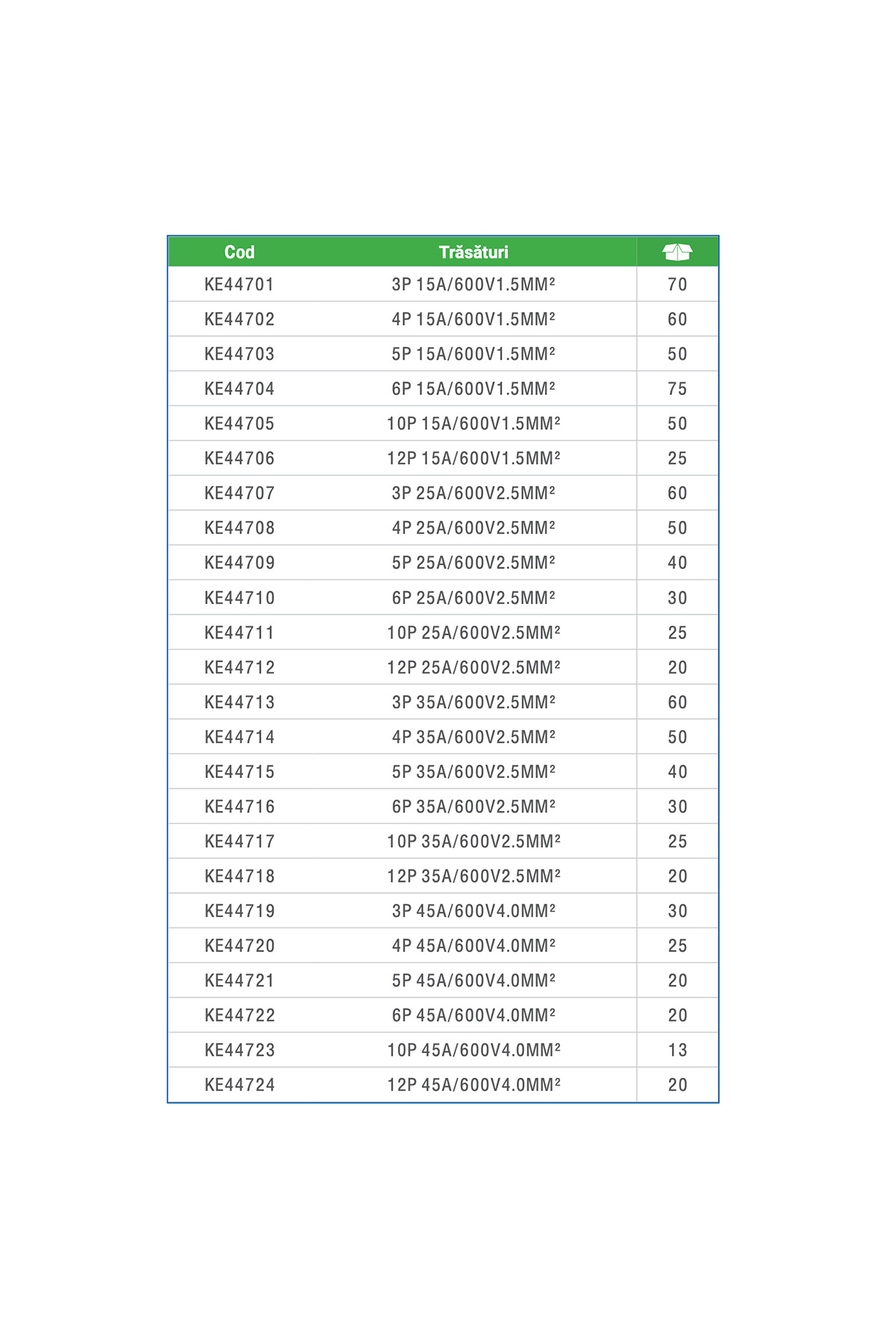 Blocul conector de 4 poli organizeaza 4 conexiuni paralele intr-un singur corp compact – mult mai ordonat si mai sigur decat 4 imbinari individuale. La 45A/600V, suporta circuite de forta si distribuție industriala. Sectiune cablu pana la 4.0 mm2 – compatibil cu cablurile folosite in instalațiile industriale.