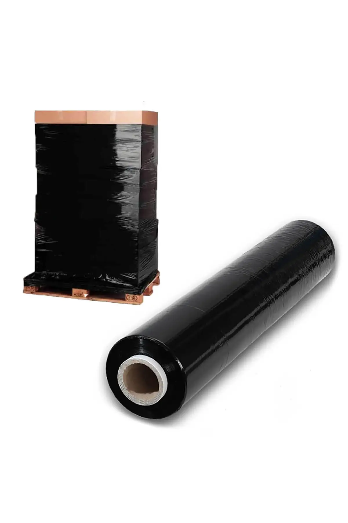 Folia neagră ascunde complet conținutul paleților — protecție anti-furt în depozite, la transport și în zone de tranzit. Util și pentru produse sensibile la lumină sau pentru paleți cu aspect neuniform.