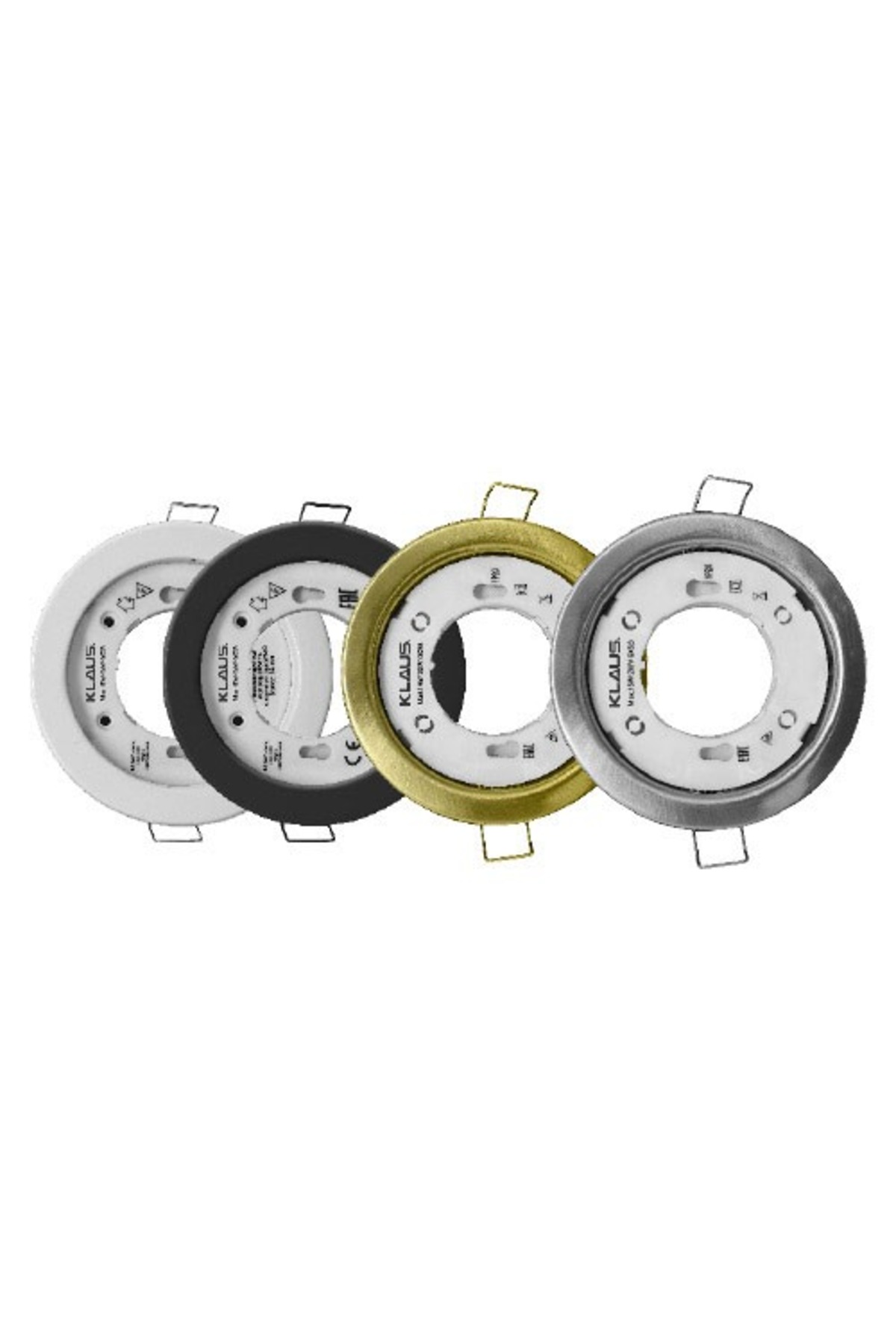 Cadrele sunt compatibile exclusiv cu spoturile Klaus tip GX5.3. Verificați codul produsului spotului — seria KE36xxx indică compatibilitate. Pe spoturi de la alți producători, dimensiunile clemelor pot diferi. Cadrul se fixează prin 3 cleme laterale de clipare.