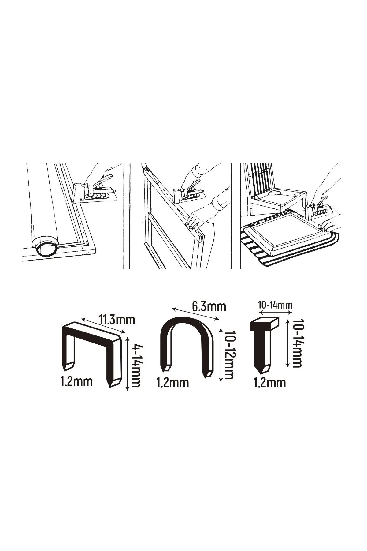 Tapițerie mobilier, fixare pânză, textile și folii pe rame de lemn. Montaj plase țânțari, izolație subțire, bariere de vapori. Bricolaj, ambalare, fixare etichete și postere pe panouri. Reparații rapide în atelier și gospodărie.